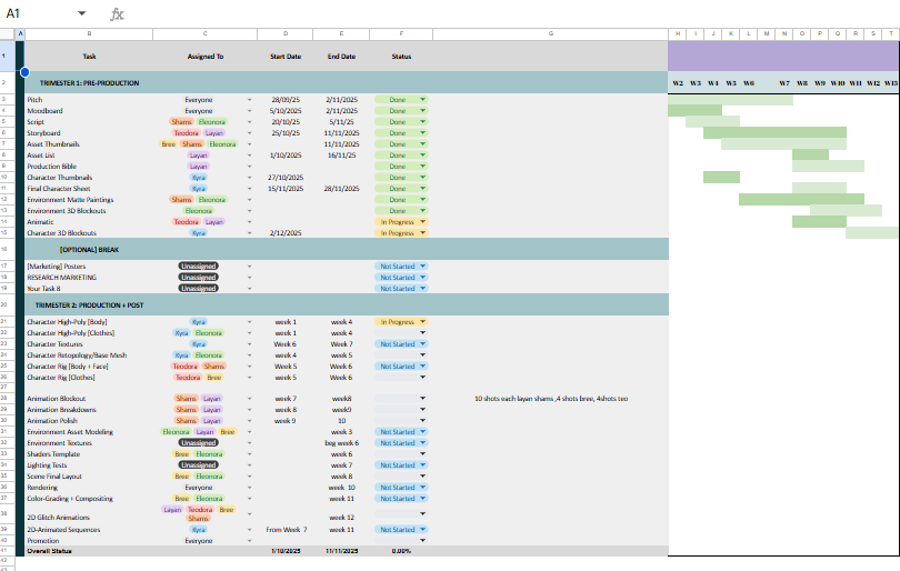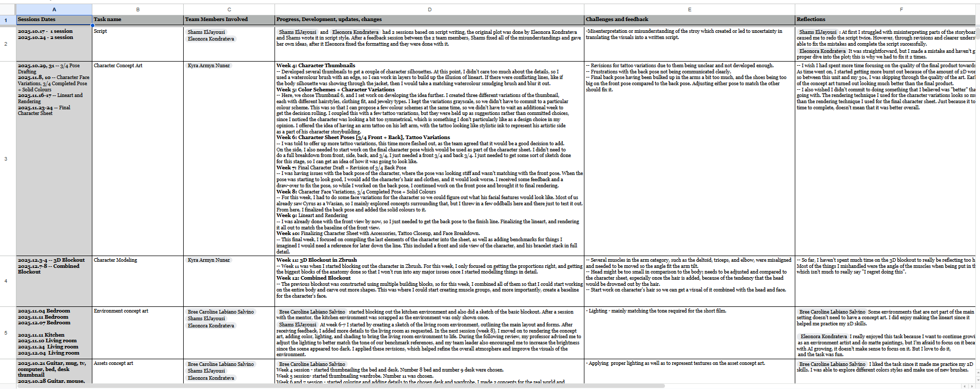 In my role as team leader, I oversee and manage all project documentation, including planning materials, style guides, the production bible, session and progress trackers, feedback documentation, the Gantt chart, and audience testing preparation. All of these documents were created and maintained by me to ensure an organized and structured production workflow. This project is still WIP.